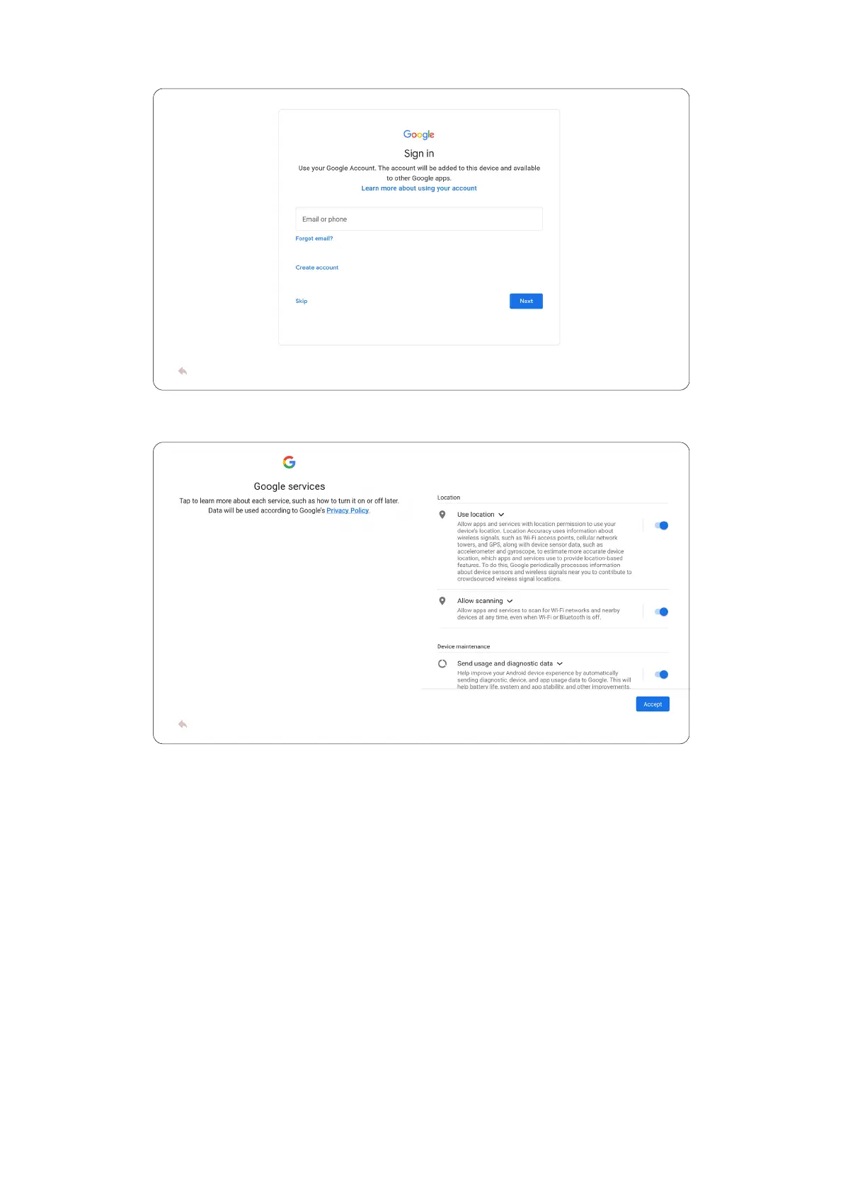 6. Sign in with a Google account, or tap Skip to connue without signing in.