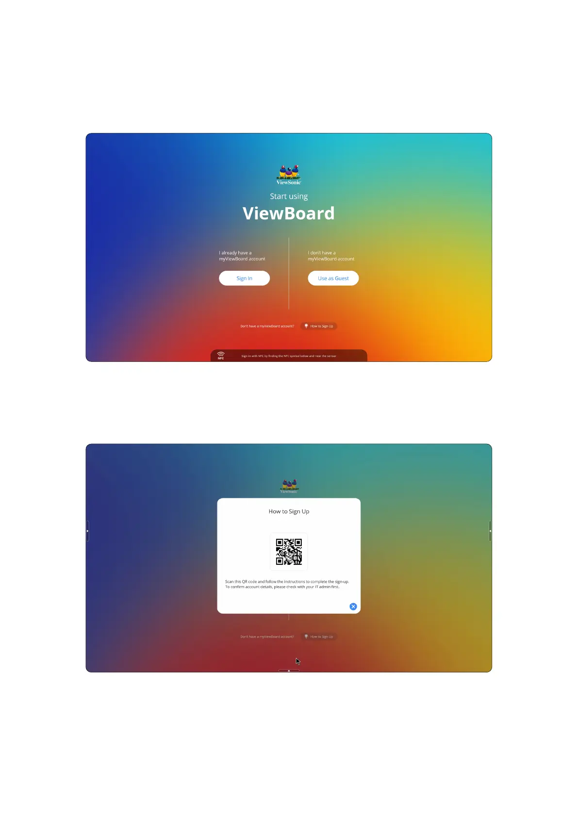 Select the How to Sign Up buon at the boom of the screen, then scan the QR