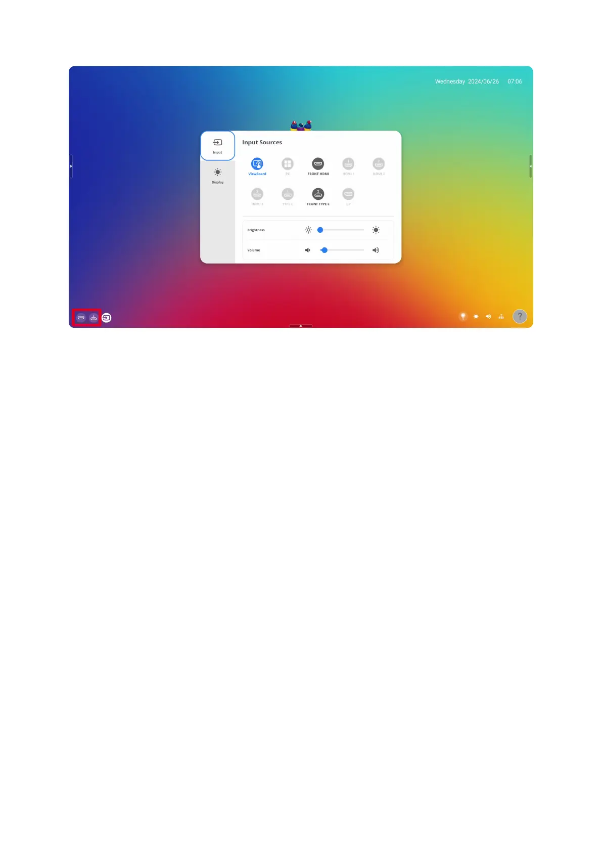 The Input Sources seng can also display by tapping the signal source icon.