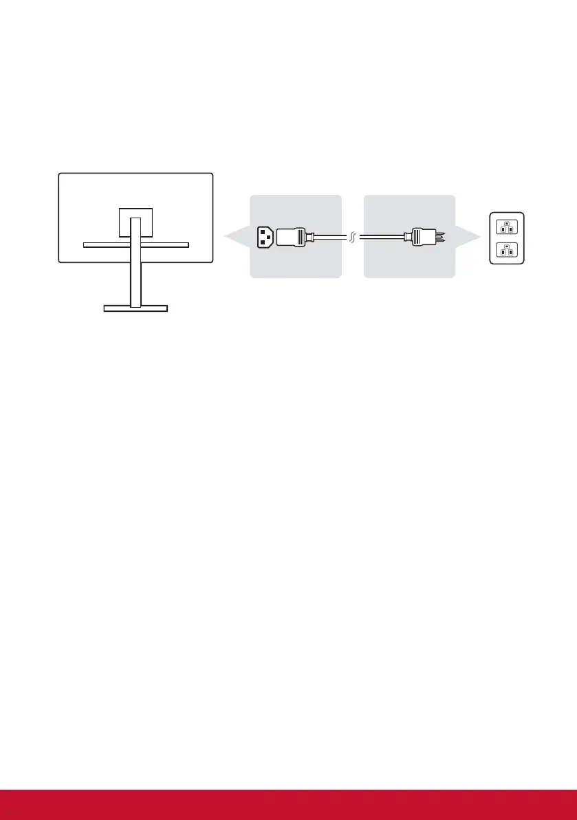 aan op de voedingsaansluiting van de monitor en de