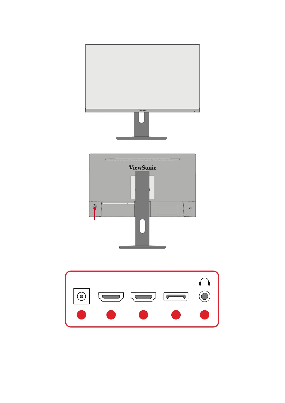 1. DC IN 2. HDMI 3. DisplayPort 4. Audio Out