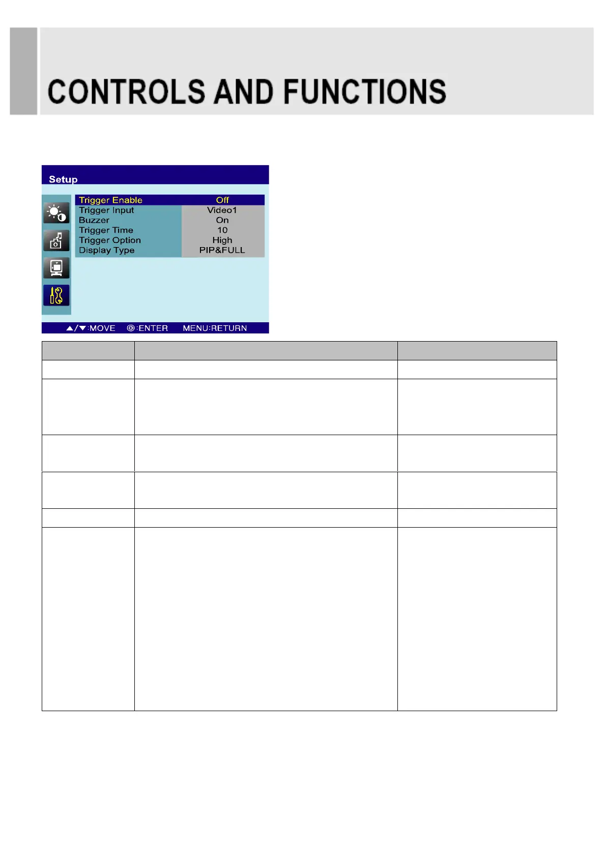 - PIP & FULL: Displays the Trigger Input in the PIP