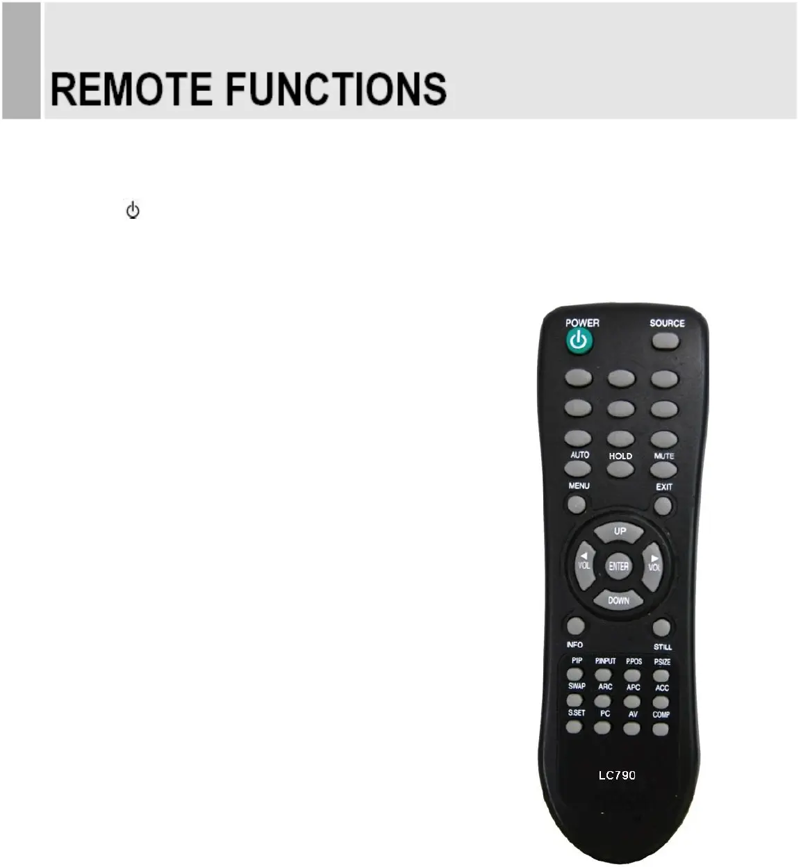Turns the power ON or OFF. There will be a few seconds delay before the display appears.