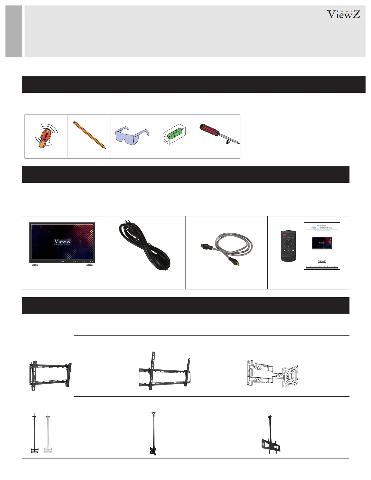 Your ViewZ monitor is shipped with all proper installaon hardware and components. If there are parts missing