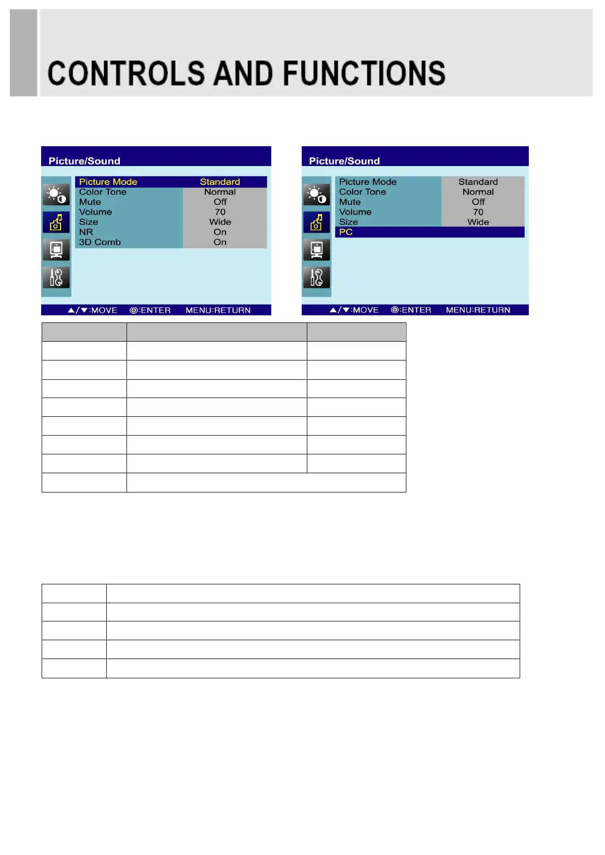 2) Unavailable in S-Video, RGB PC, DVI, HDMI1, HDMI2 and Component.