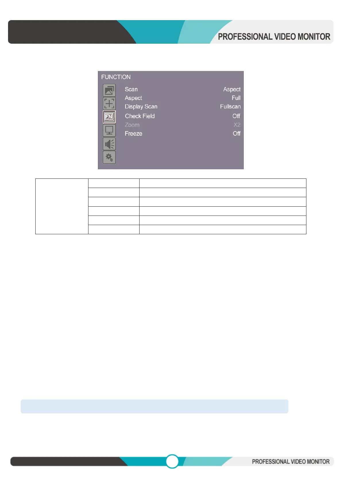 Select Aspect under Scan option, then use Aspect option to switch between several aspect ratio setting. For