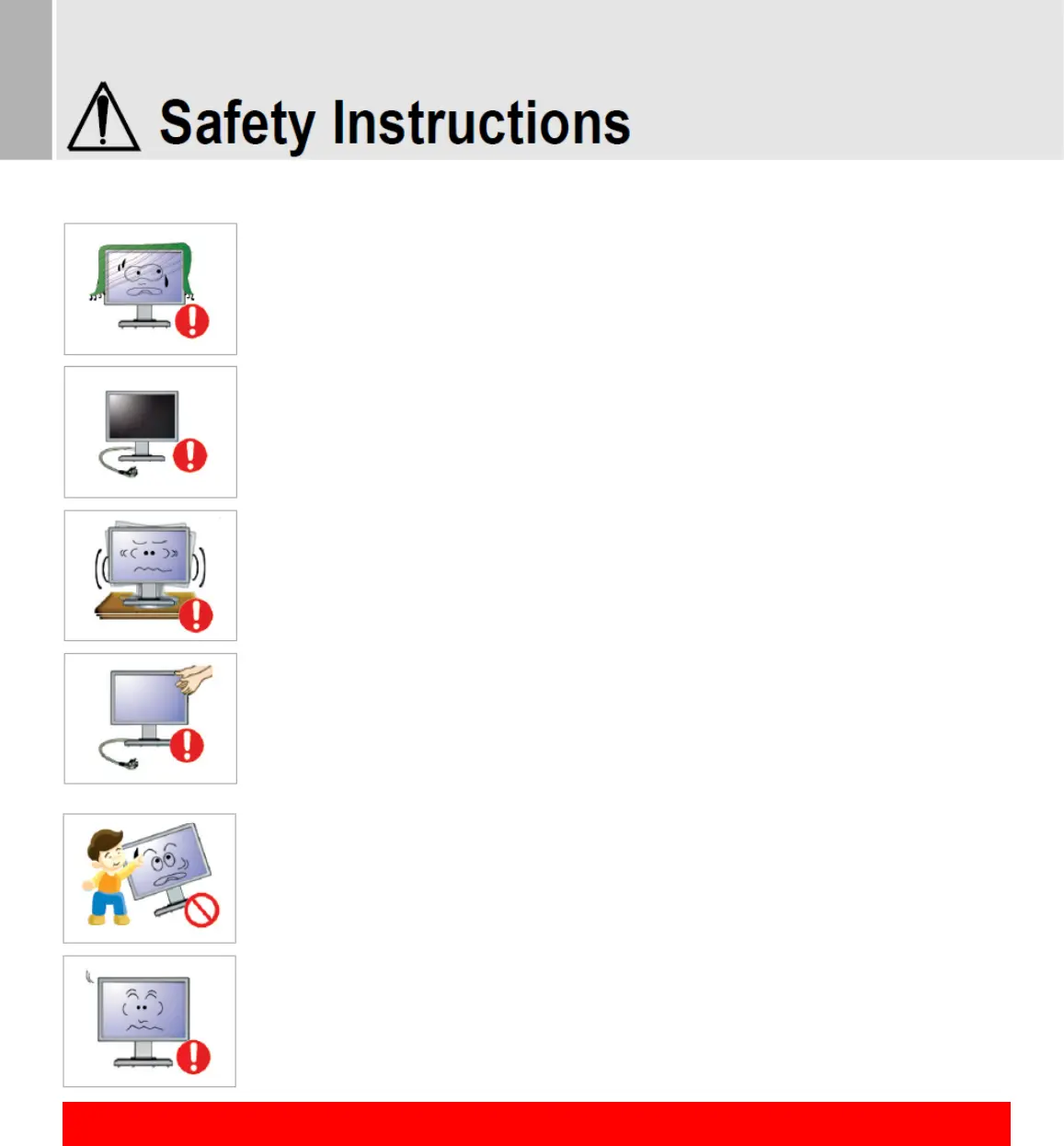 - Moving the monitor without disconnecting the cod will damage the cord, which may cause