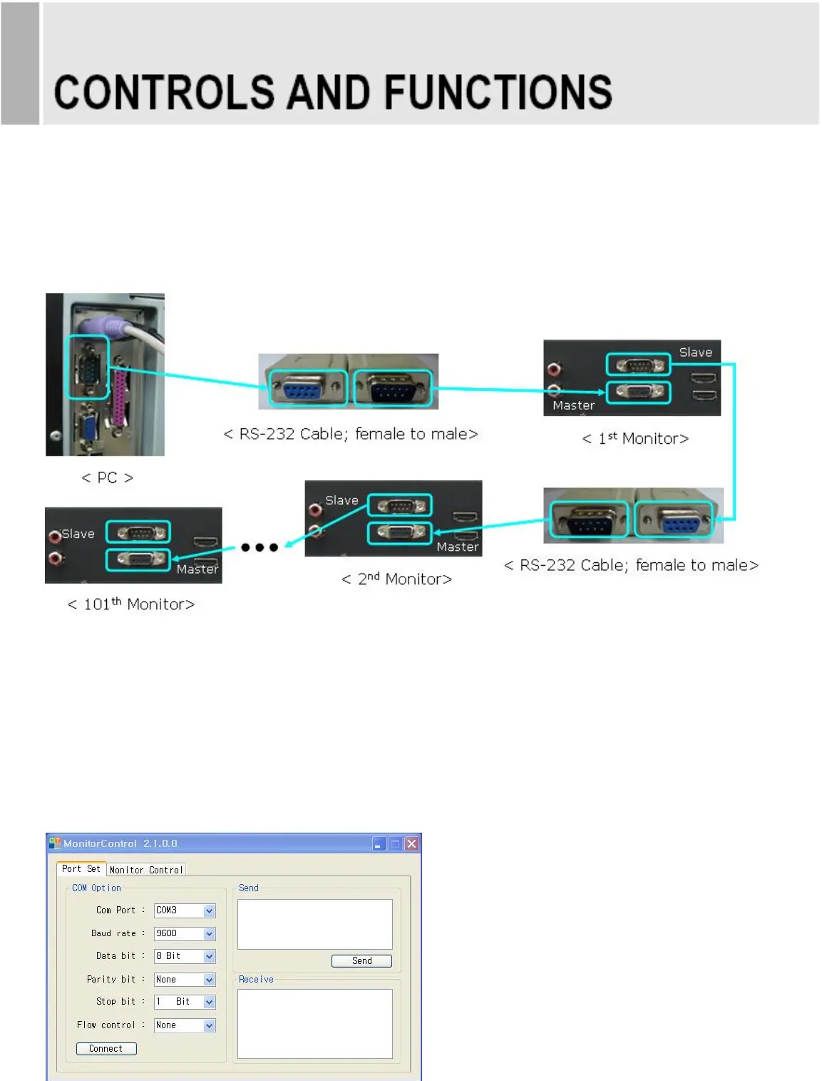 1. Connect the PC and Monitor(s) with RS-232 Cable. The PC and Monitor(s) have to be turned on.