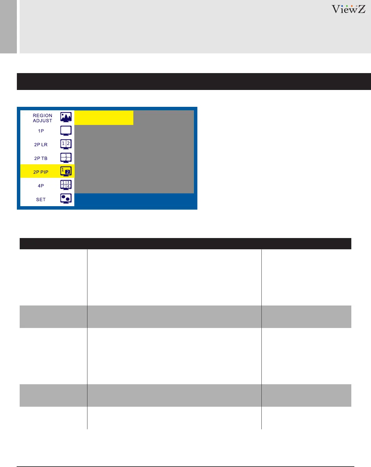 Select a display type among 1P, 2PLR, 2PTB, 2P PIP & 4P,
