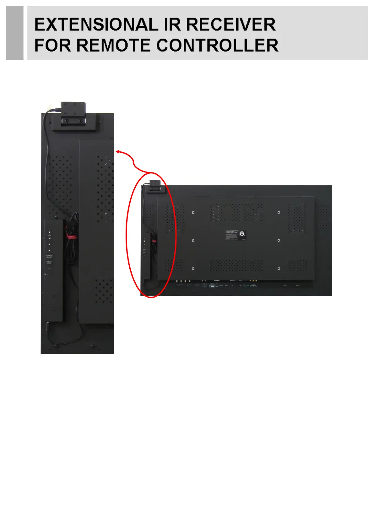 1. Extensional Remote Controller Receiver is on the top of the monitor.