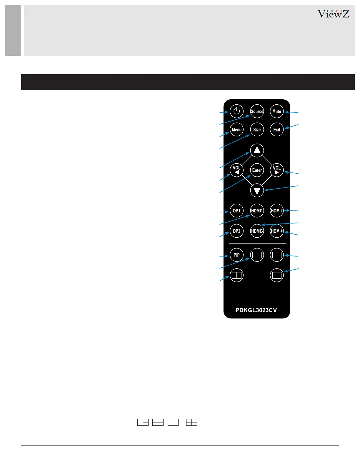 9. Without entering OSD MENU, press PIP, , , or buon to select desired viewing mode