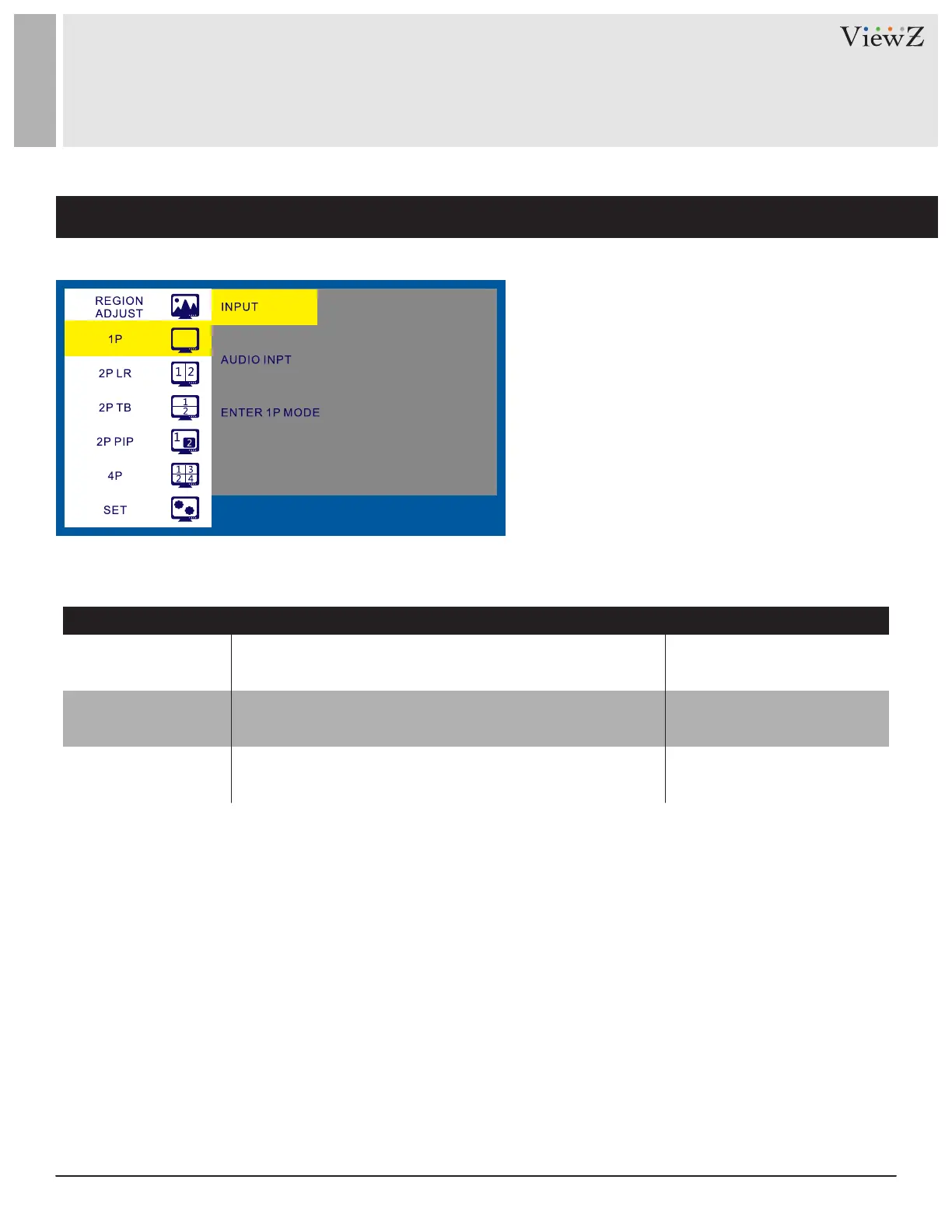 Select a display type among 1P, 2PLR, 2PTB, 2P PIP &