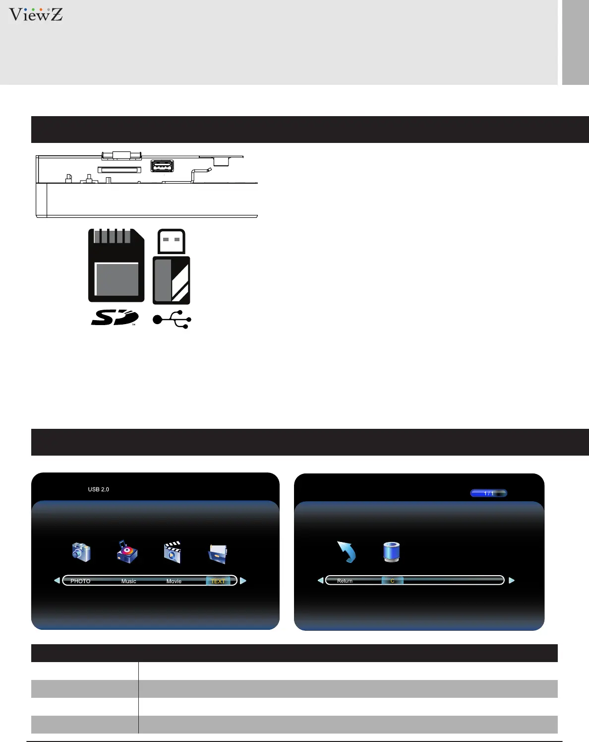1. Connect USB or SD card devices to USB or SD Card