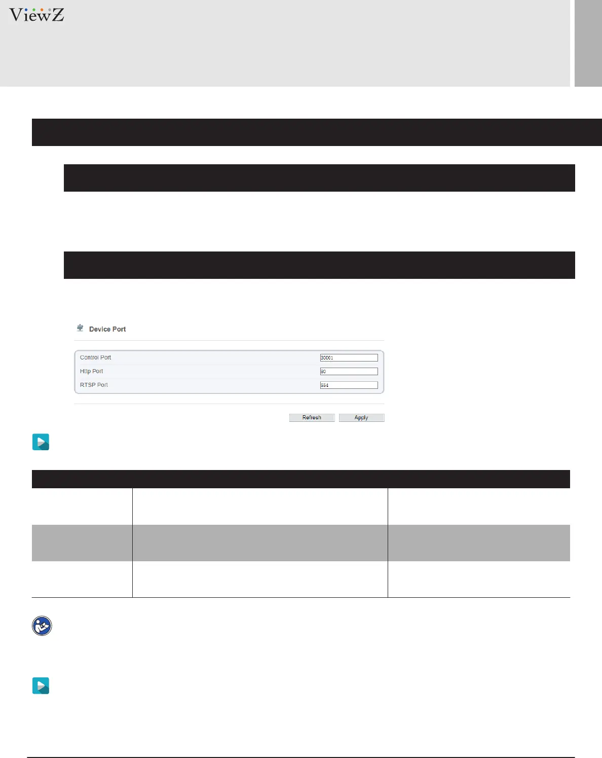 HTTP port, RTSP port and RTMP port, see the communicaon matrix.