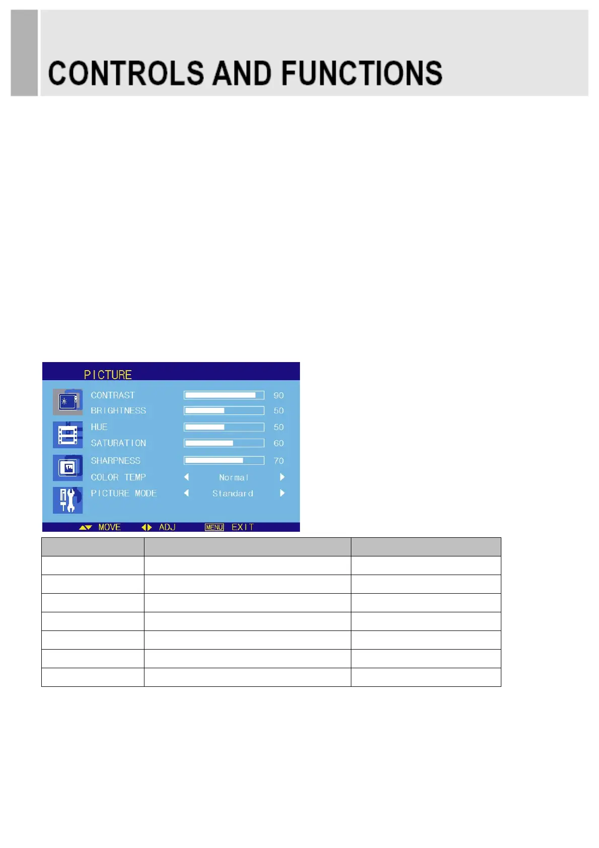 COLOR TEMP Select the color temp of picture Normal, Warm, Cool