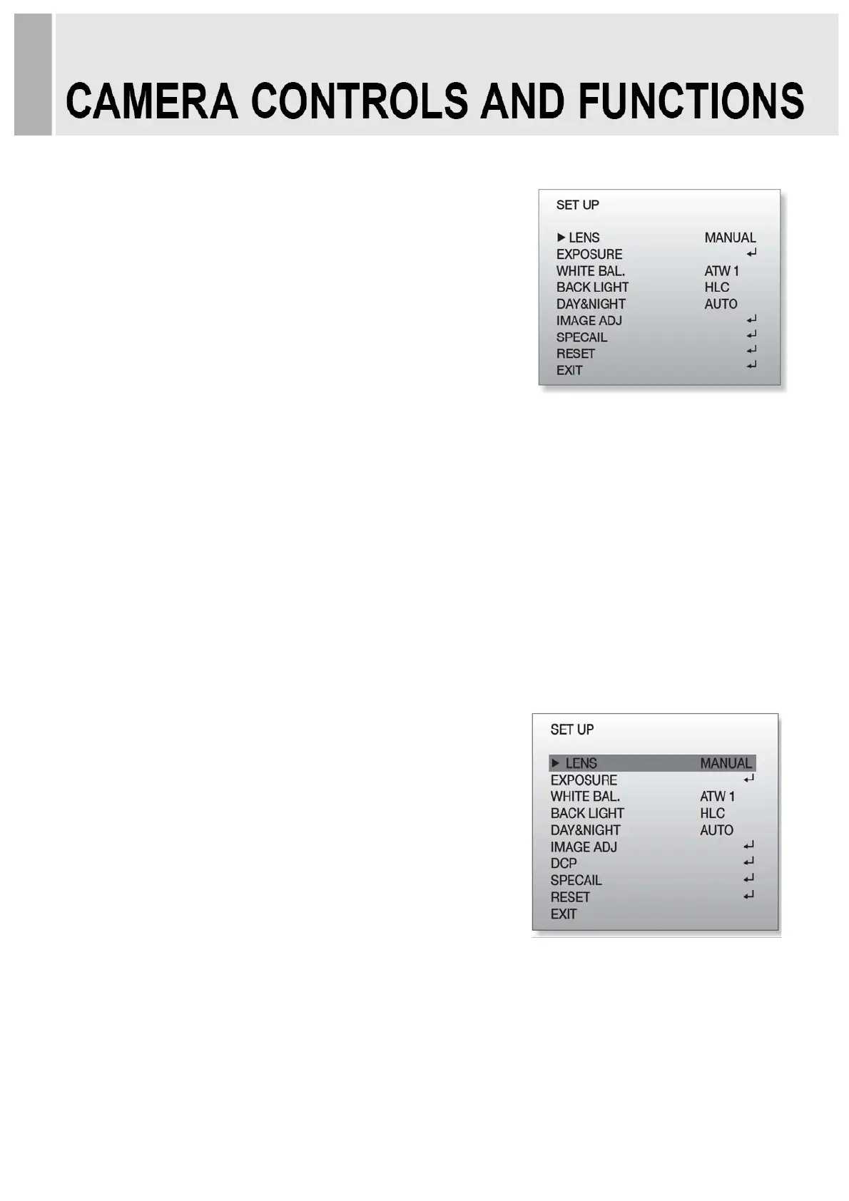 controlled using the Electronic Shutter, AGC, and Sense-Up.