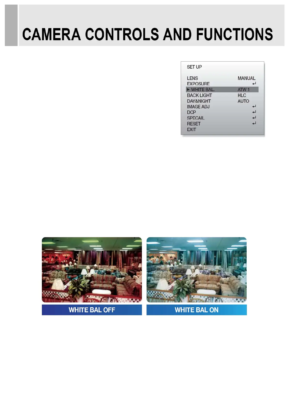 - Auto tracking white balance. In certain light conditions the colors are adjusted automatically.
