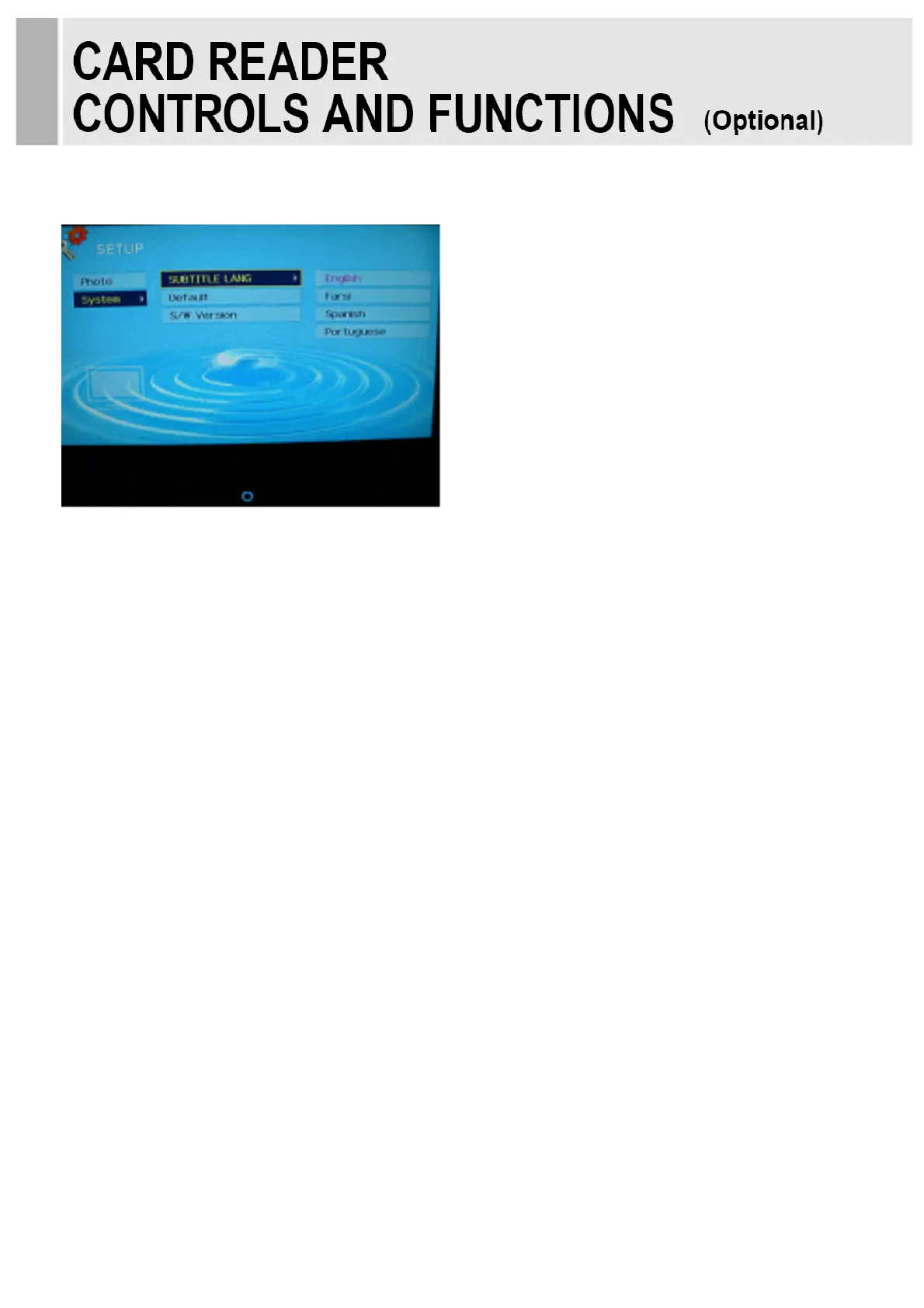 4. Press the ▶ and then use ▲/▼ button to select SUBTITLE LANGUAGE.