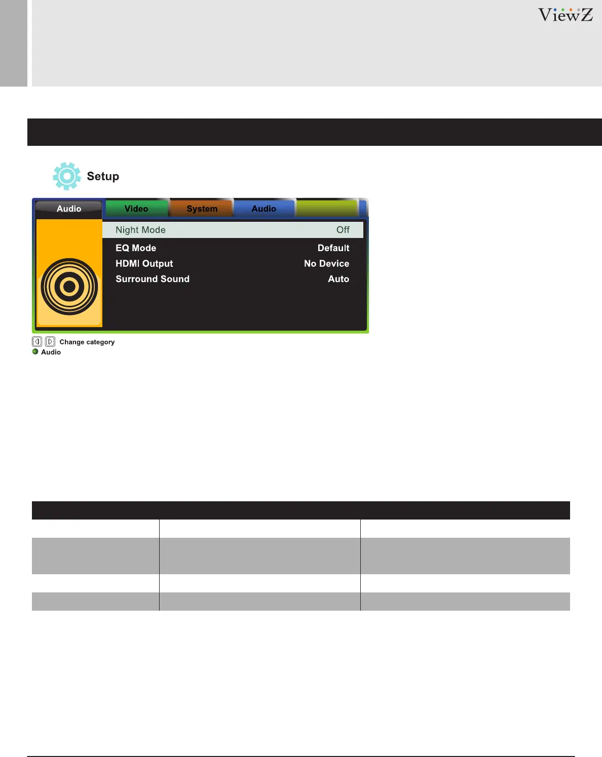 1. Press the ENTER buon and then press ◄ / ► buons to select between Video / Audio / System setup.