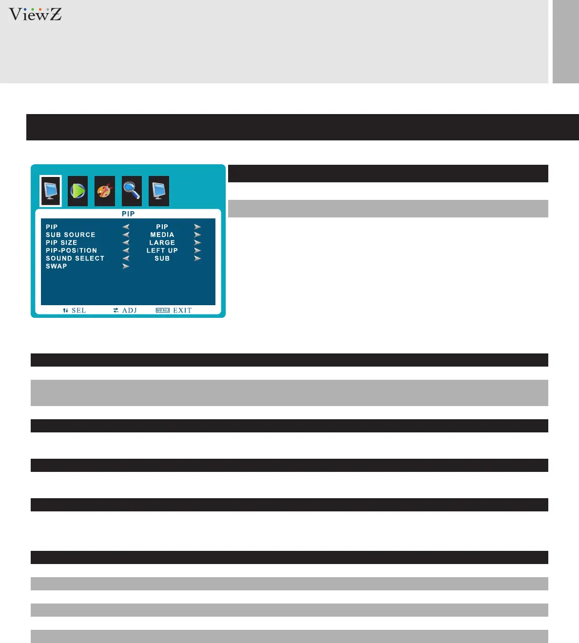 Selects PIP or OFF