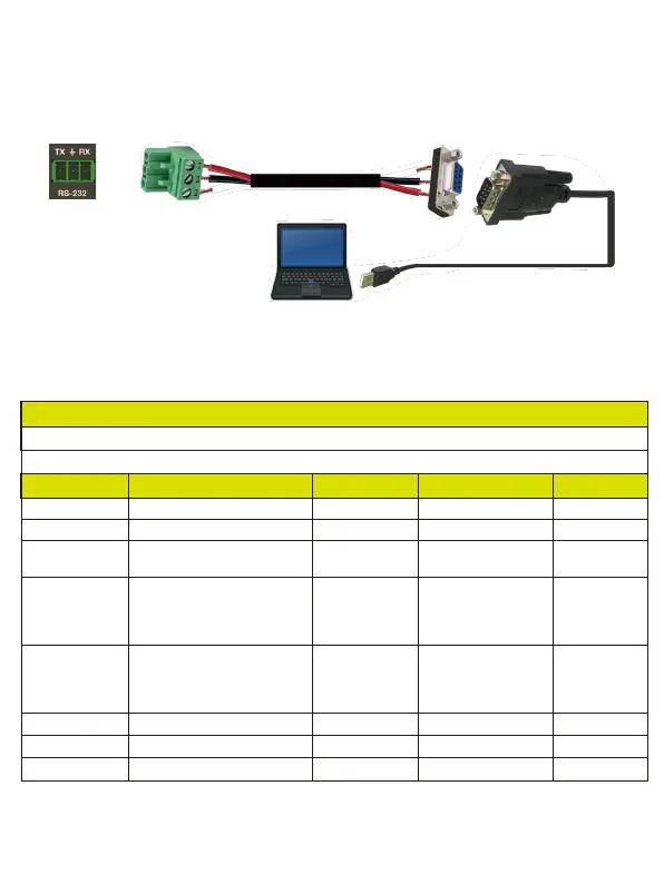 of the product to a PC with a 3-pin phoenix connector cable and an RS-232 to