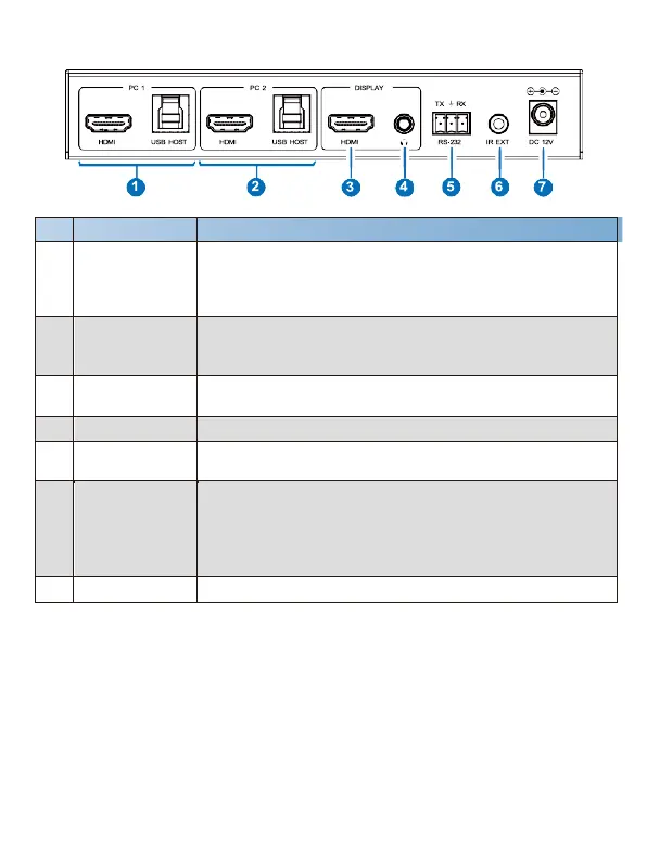 USB HOST: USB Host port, connected to PC 1. It can be
