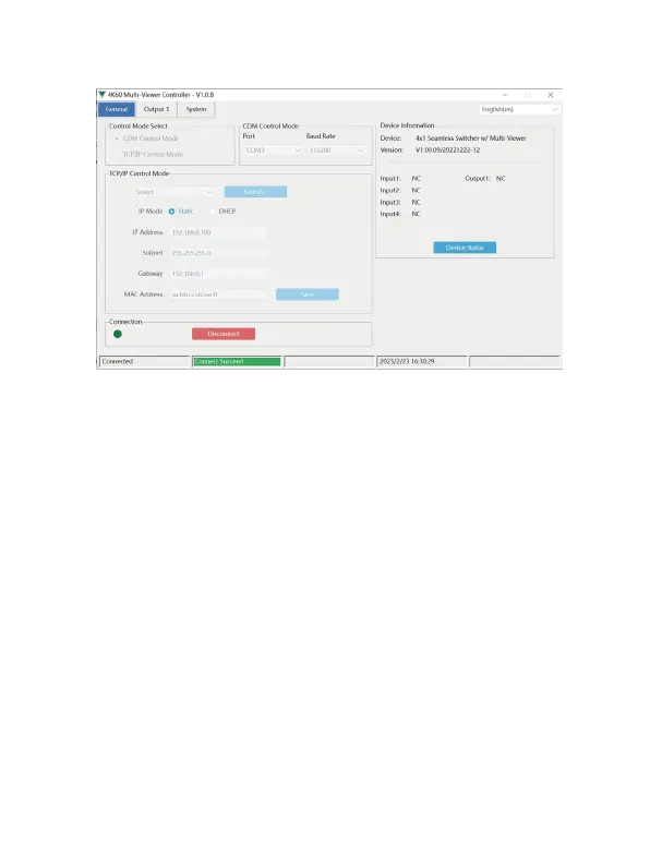 ① Control Mode Select: Select the “COM Control Mode”. (TCP/IP