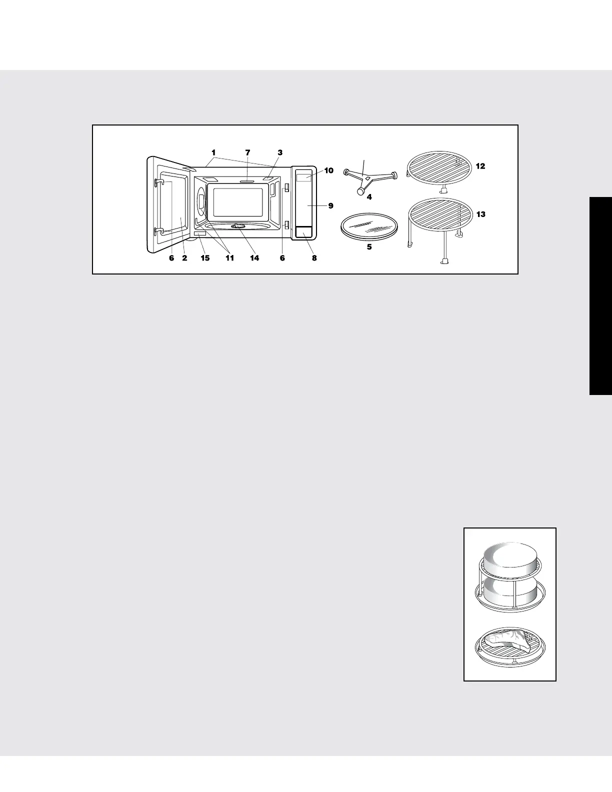 • Esta parrilla se coloca sobre la bandeja giratoria para cocinado de dos niveles, tales como