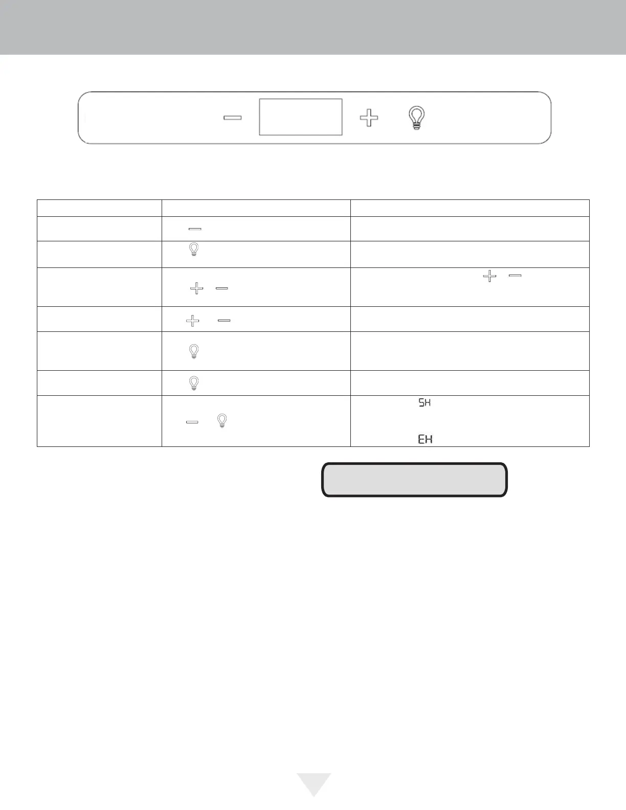 ON/OFF Press and hold for 5 seconds. Unit will immediately turn ON or OFF.
