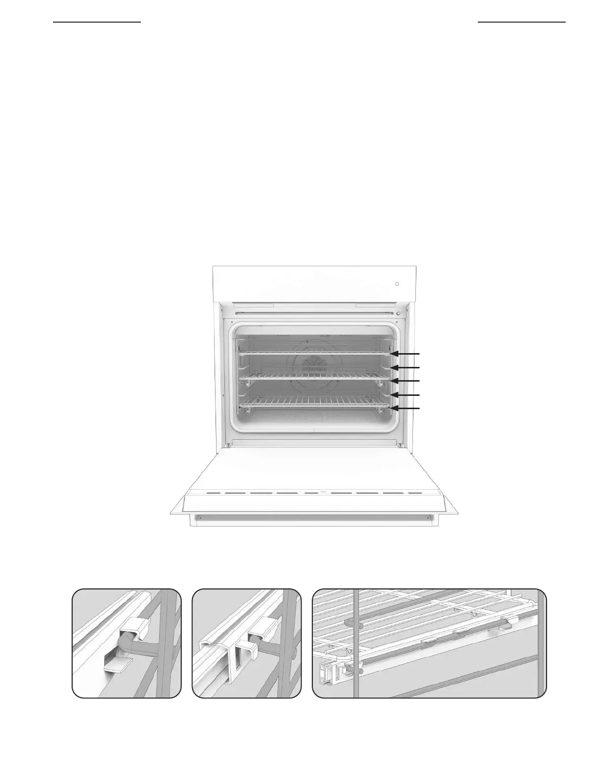 1. Coloque las rejillas del horno en las posiciones deseadas ANTES de calentar el horno. Si cocina en dos rejillas al