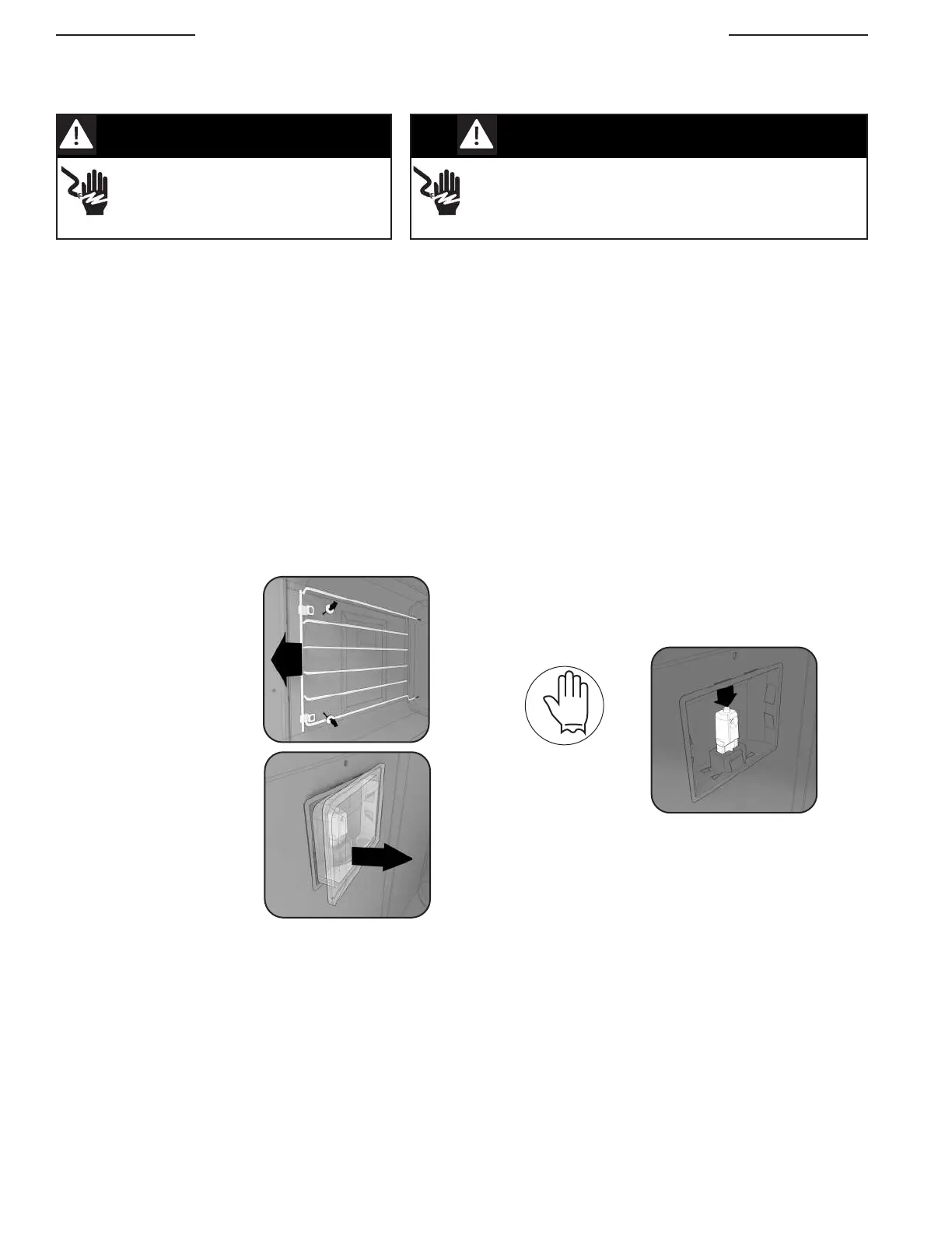 • Asegúrese de que la cavidad y los elementos estén fríos antes de proceder. Un elemento para asar caliente se