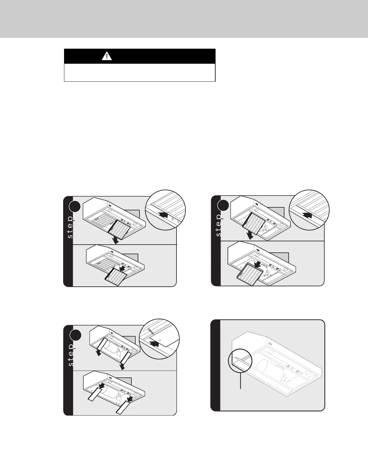 • Do not take the baffle filters apart to clean them. It is not necessary and will void the filter warranty.