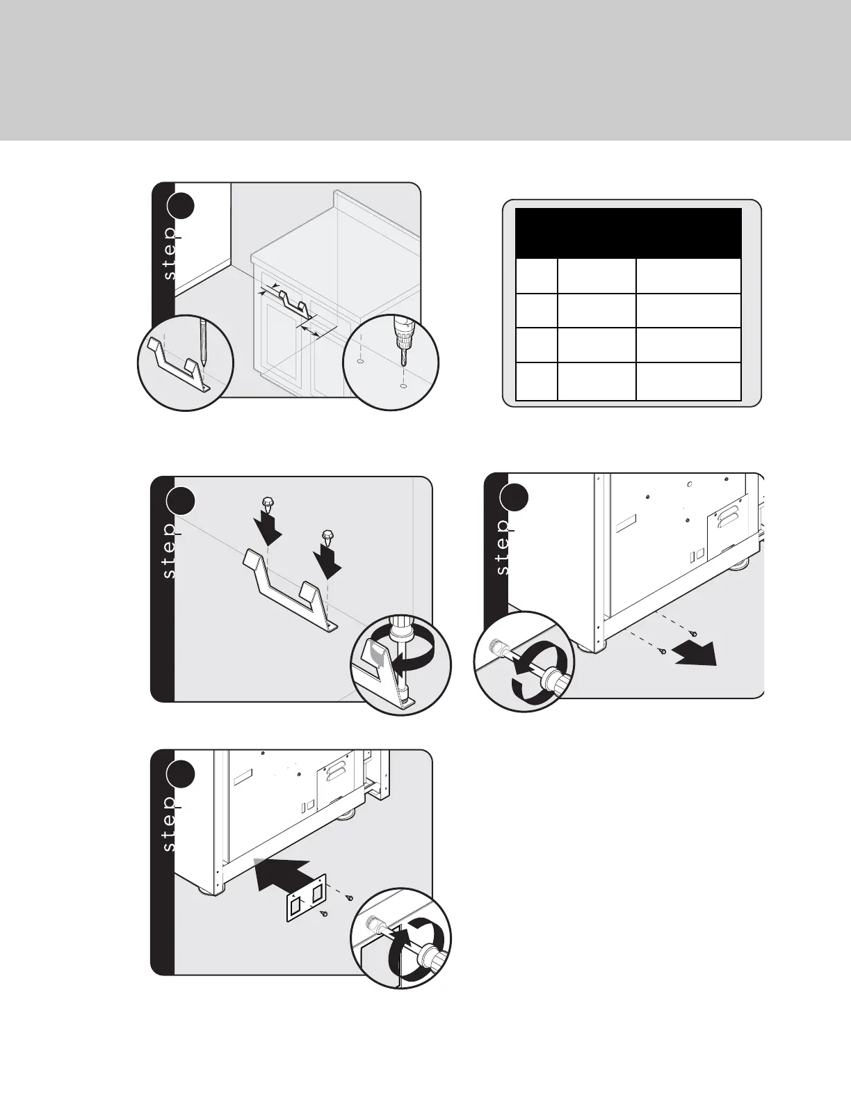 Locate anti-tip bracket hook on the floor Dim A from side cabinet and 1-