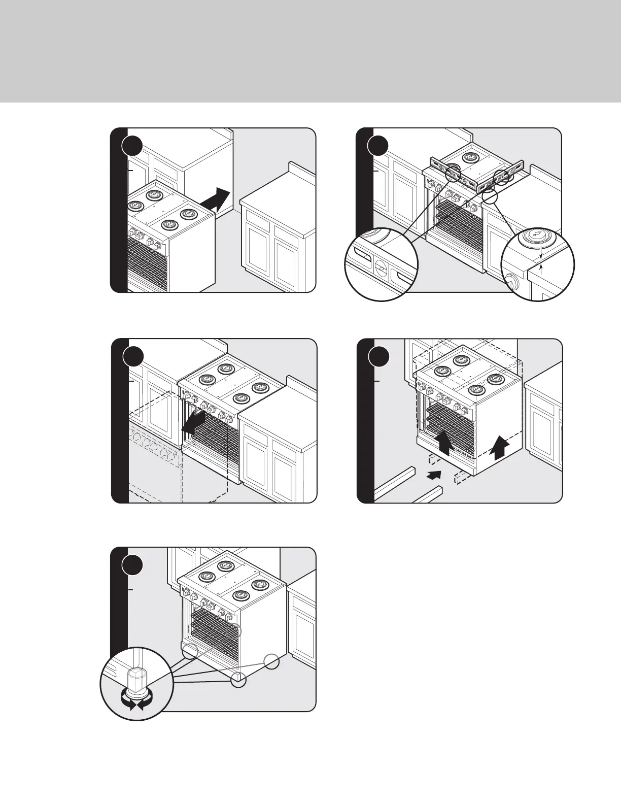 3/8” (0.95 cm) above countertop. Level range to high corner.