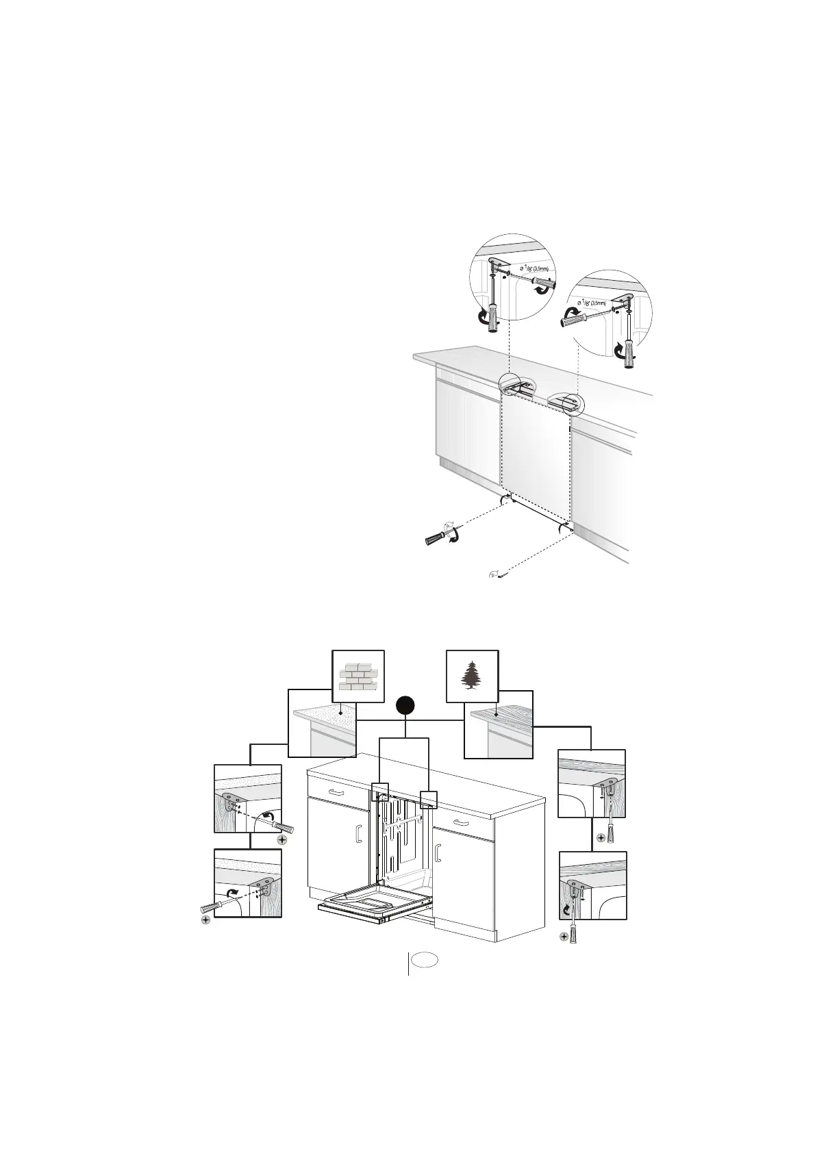 If your counter is wooden fix the mounting brackets (A) under the counter with the screws
