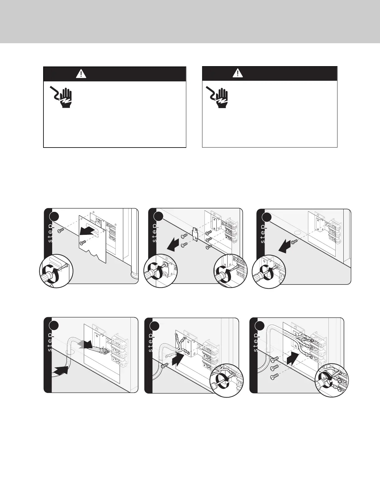 The electrical connection is made at the terminal block, which is located behind the access door on the back