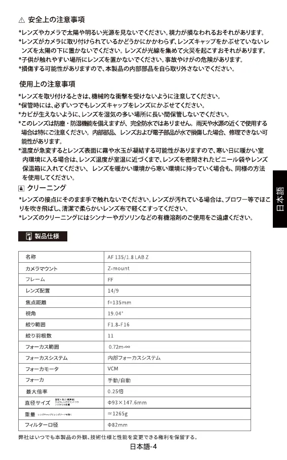 Bekijk gratis de handleiding van Viltrox AF 135/1.8 LAB Z, stel vragen en lees de antwoorden op veelvoorkomende problemen, of gebruik onze assistent om sneller informatie in de handleiding te vinden of uitleg te krijgen over specifieke functies.