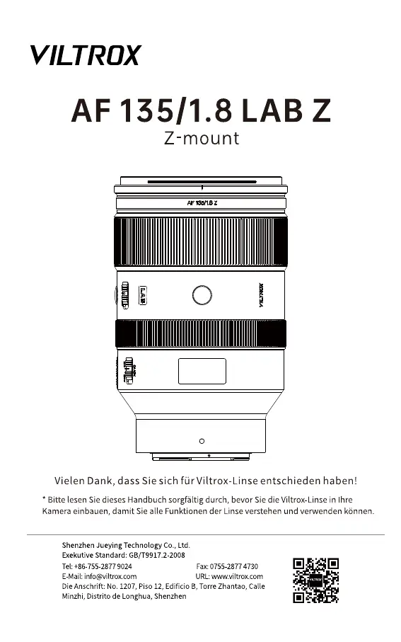 Viltrox AF 135/1.8 LAB Z handleiding