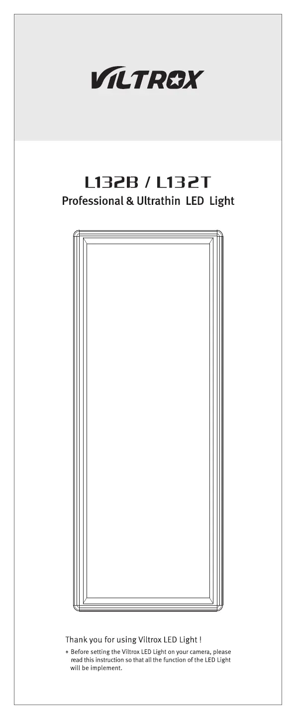 Bekijk gratis de handleiding van Viltrox L132T, stel vragen en lees de antwoorden op veelvoorkomende problemen, of gebruik onze assistent om sneller informatie in de handleiding te vinden of uitleg te krijgen over specifieke functies.