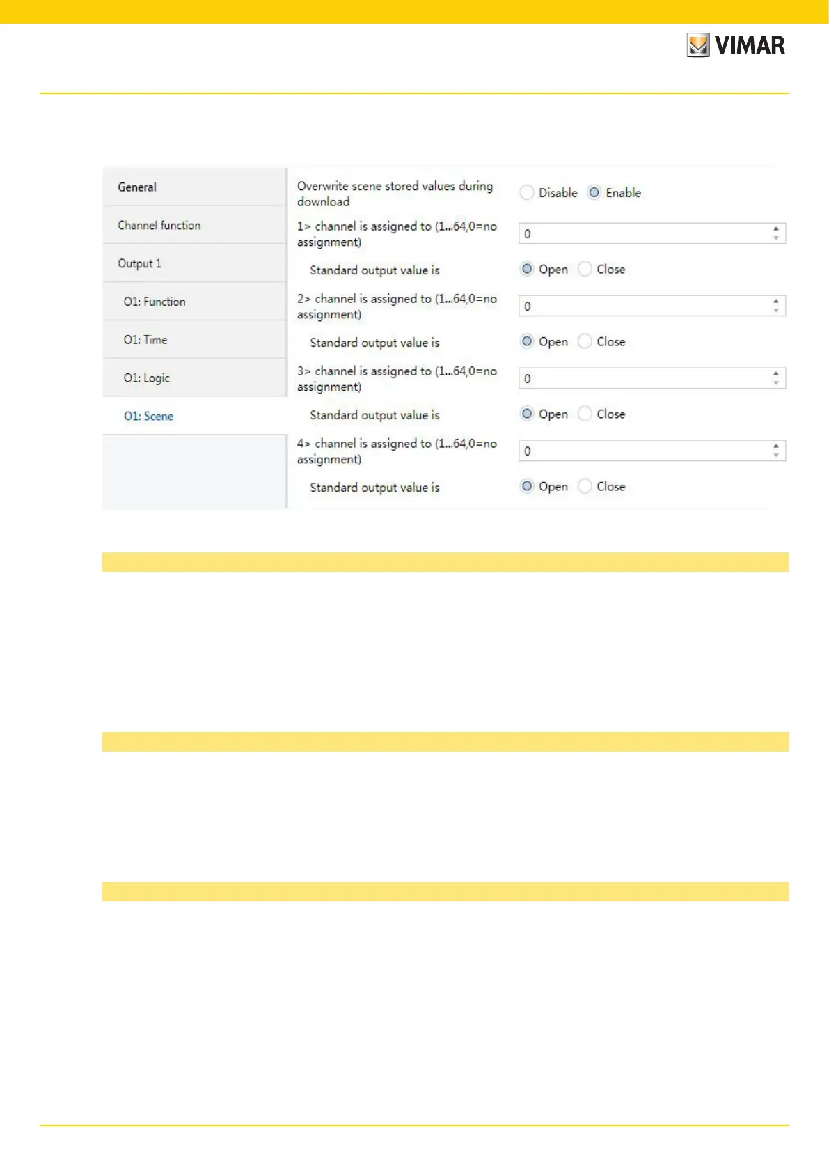 Disable: If selecting “Disable”, the stored values before the download can be not overwritten by the parameterized scene value. When the scene is called, the