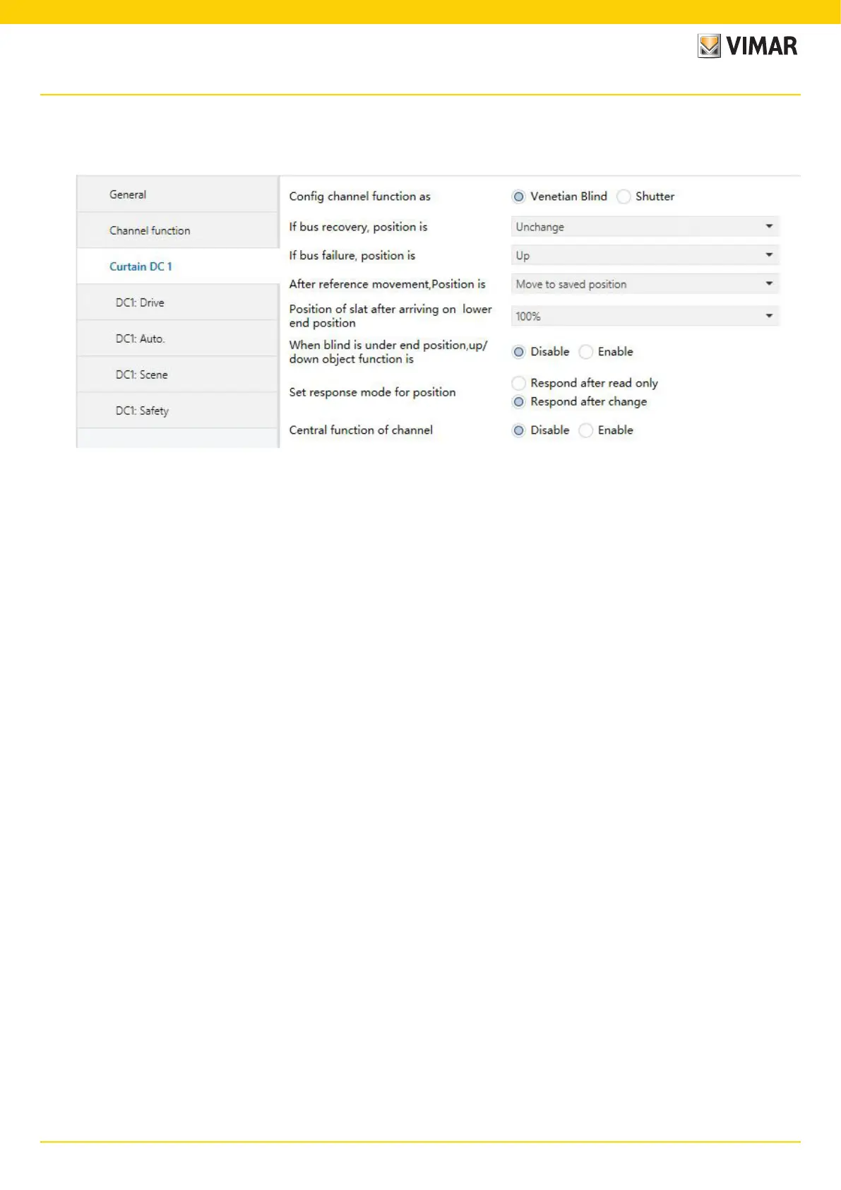 The curtain (DC) output has a maximum of 6 output channels, since the parameters and communication objects assigned to each output are the same as those of the