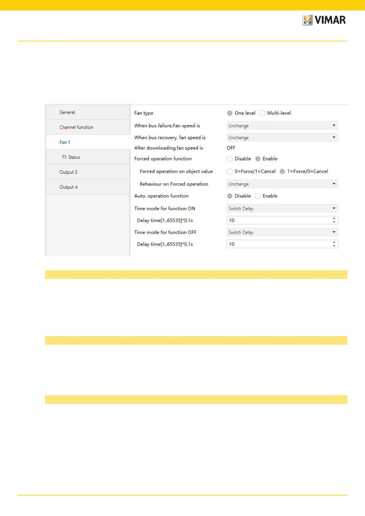The fan output has a maximum of 6 output channels. Since the parameters and communication objects assigned to each output are the same, an output is taken as