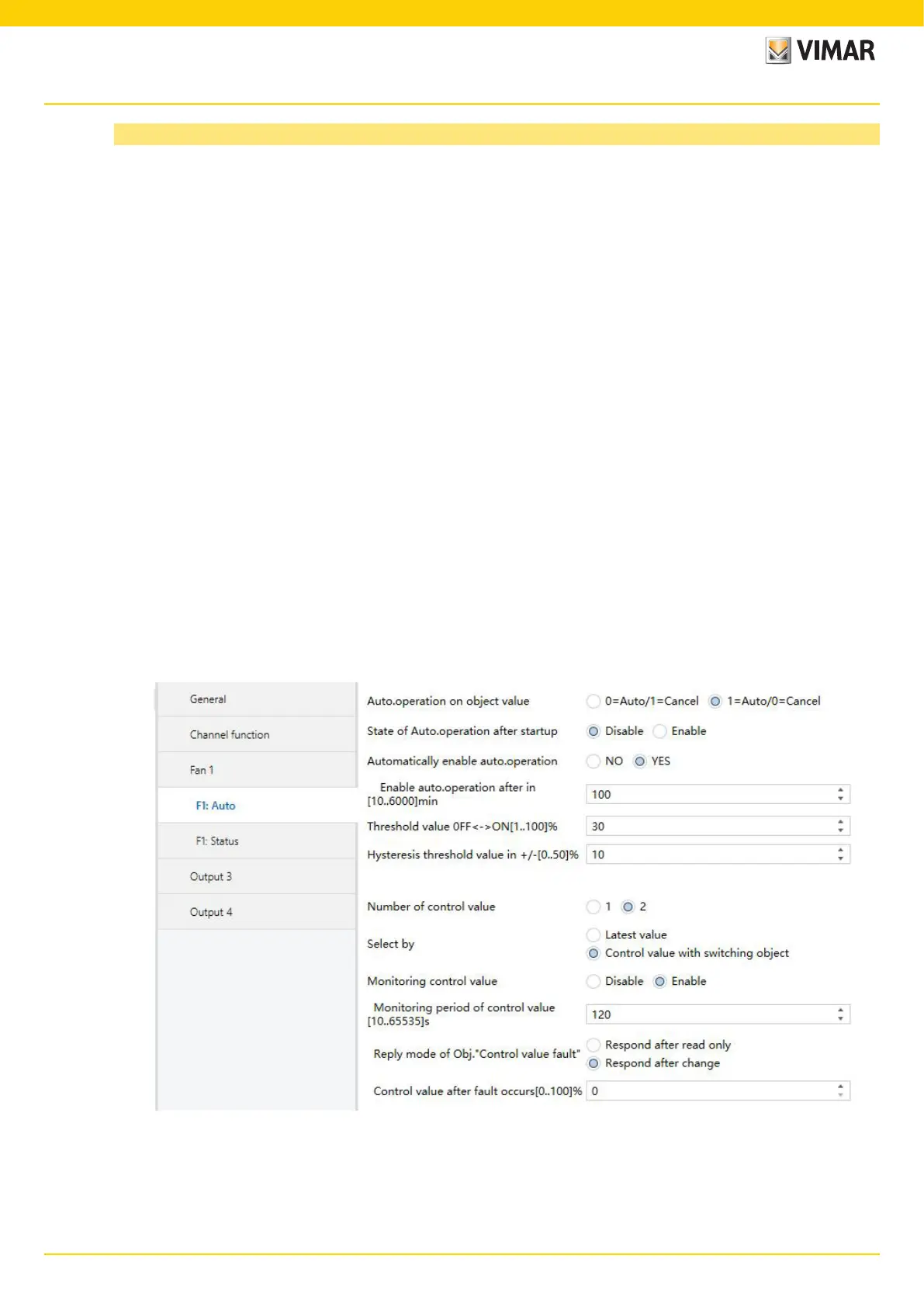of the fan speed comes from the bus, and one control value or two control values can be set in the function parameters. For example, in the fan coil