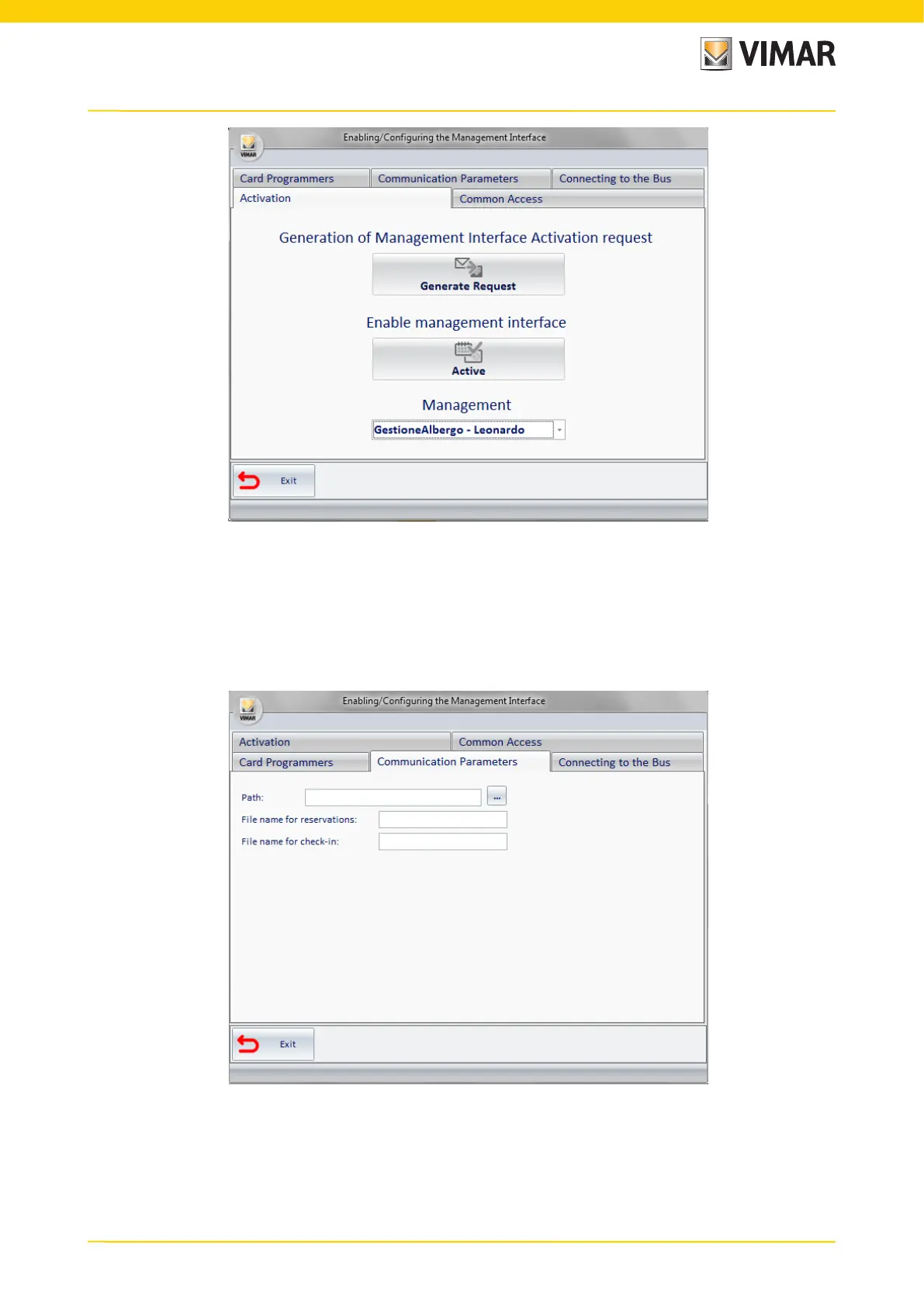 Enter the required data, in "Hotel Management - Leonardo" the communication takes place through files exchange; therefore, the path and name of the two