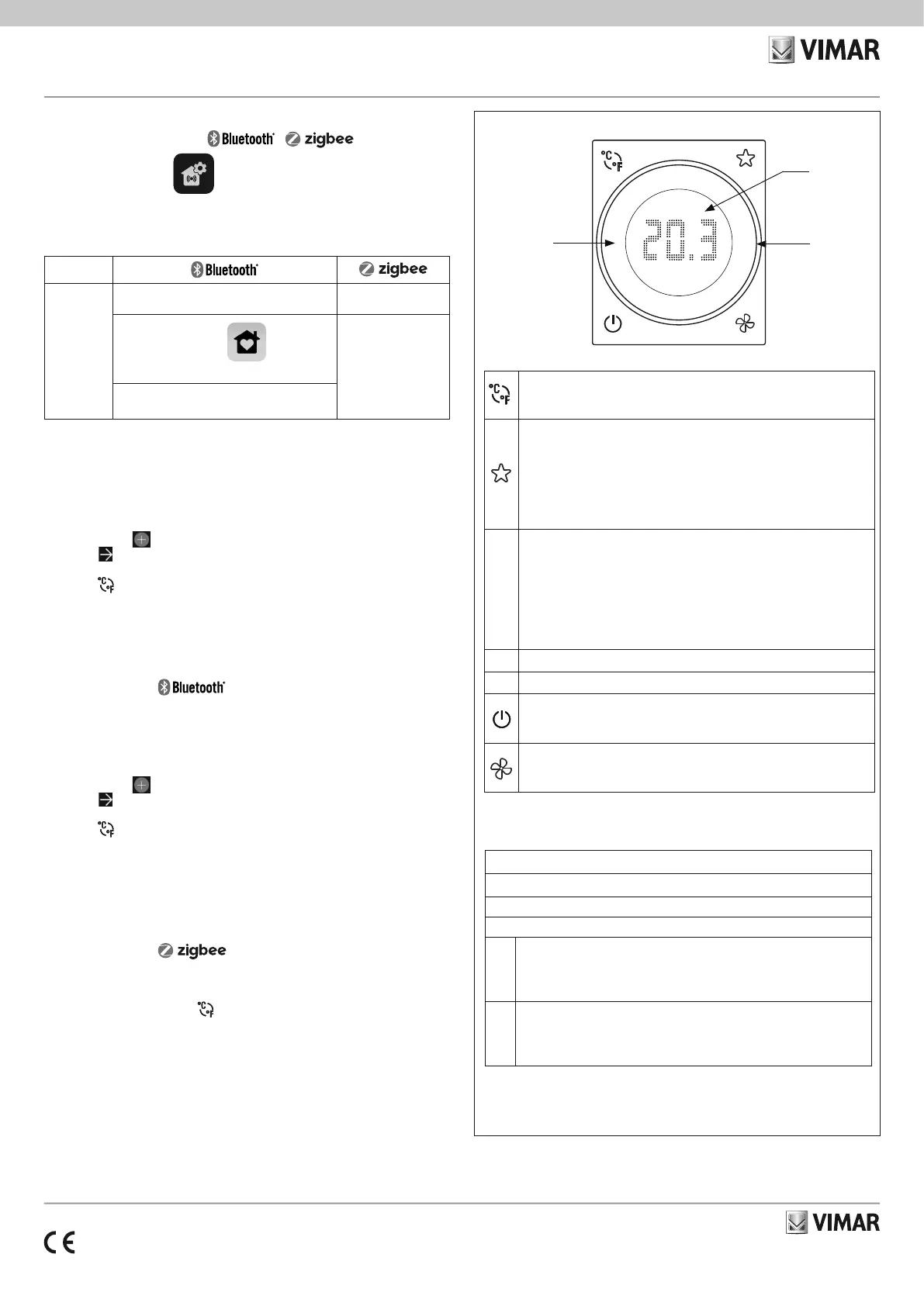 •  Long press (5 s) = the thermostat enters the configuration phase (bt)