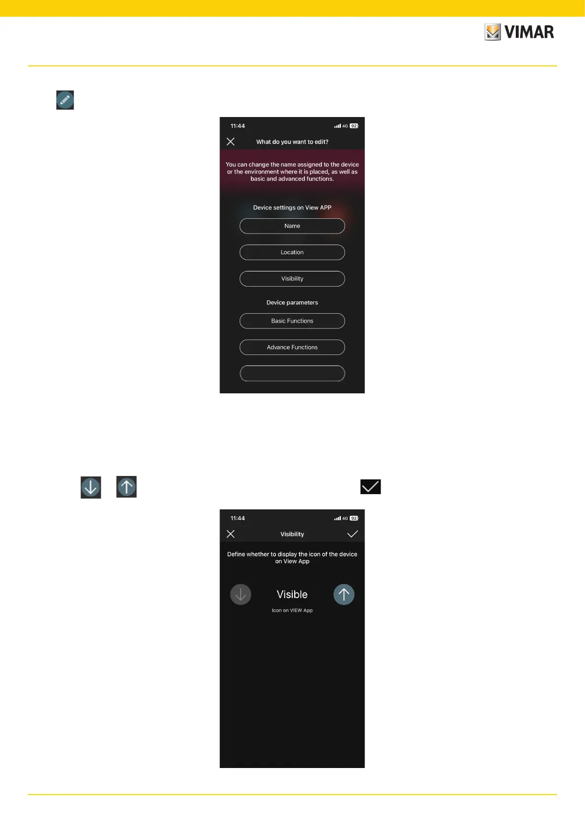 Designed, using and , to display the entrance panel on the View App or not. Then confirm with .