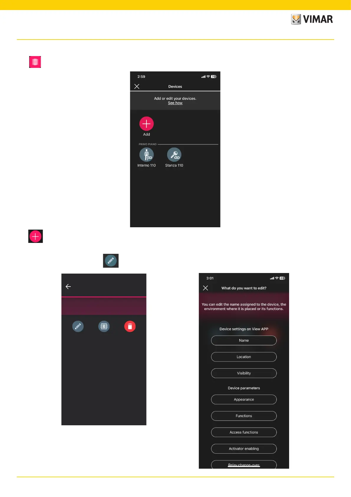 Select (Devices) to display the screen with the configured devices which will allow you to rename them, delete them, edit their functions or add new ones.