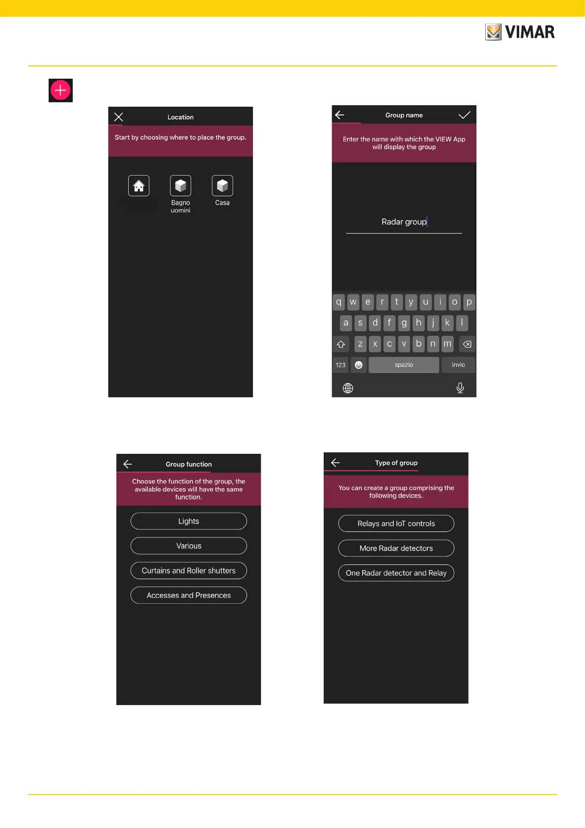 Choose the function of the group; according to this choice, the possible options are then displayed.