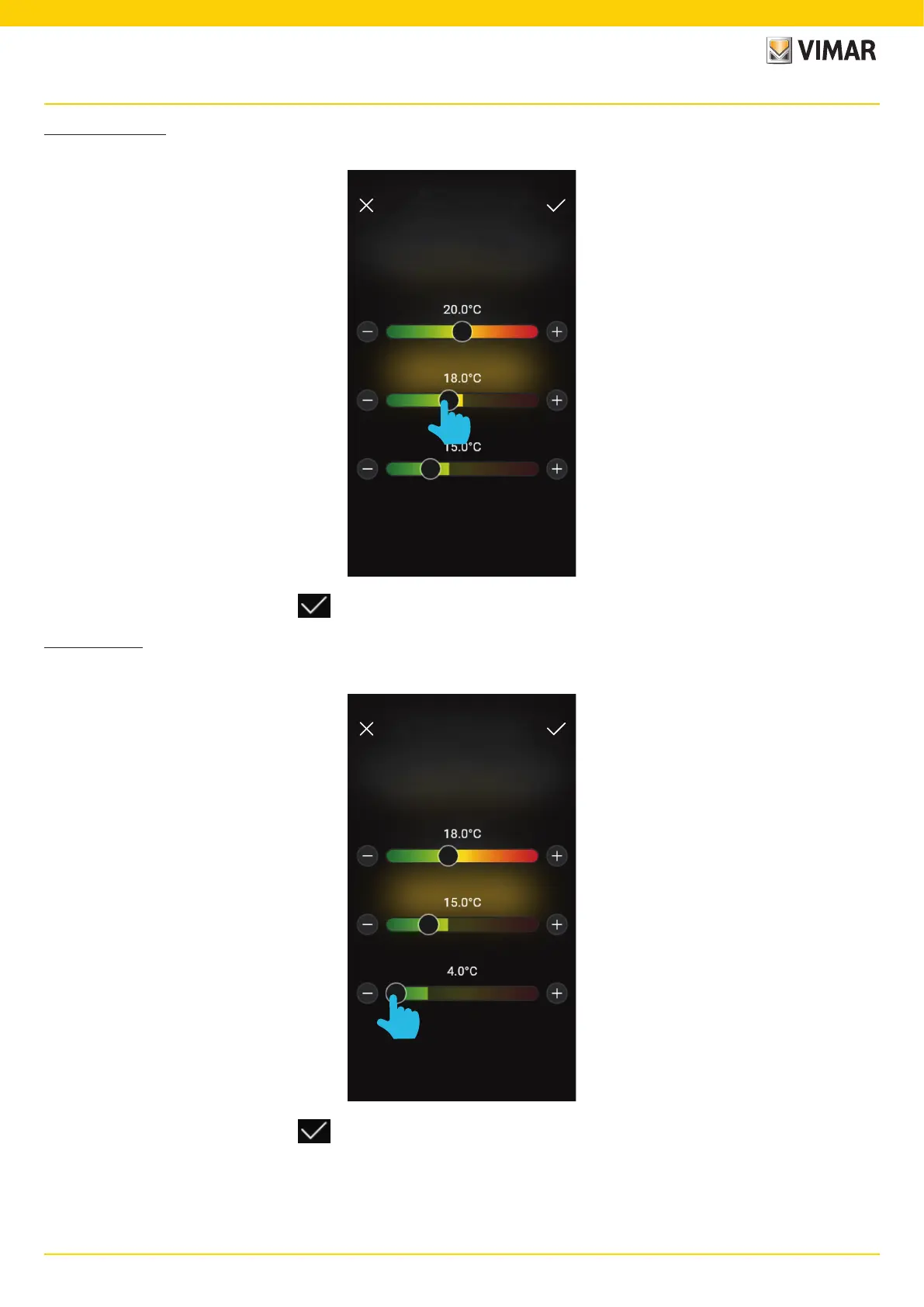 Once the desired values have been set, confirm with .