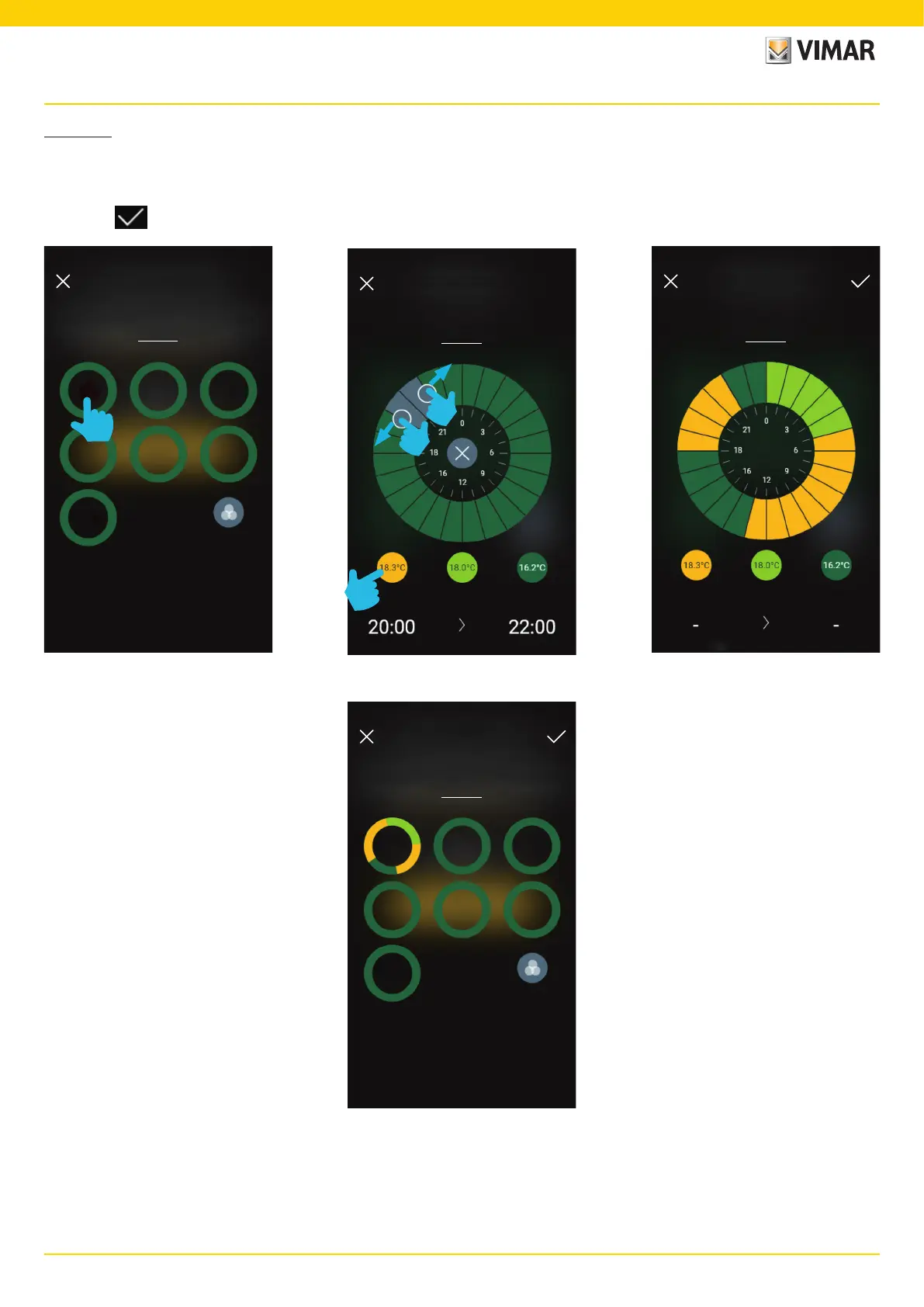 - Touch and drag until you highlight the area corresponding to the time bands to be modified; then select the temperature to assign (T2 or T3).